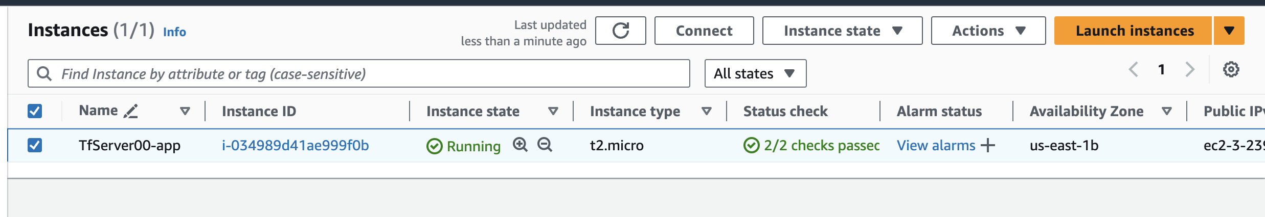 Connectez-cous sur la console AWS et vérifier que l'instance EC2 TfServer00-app est bien crée.