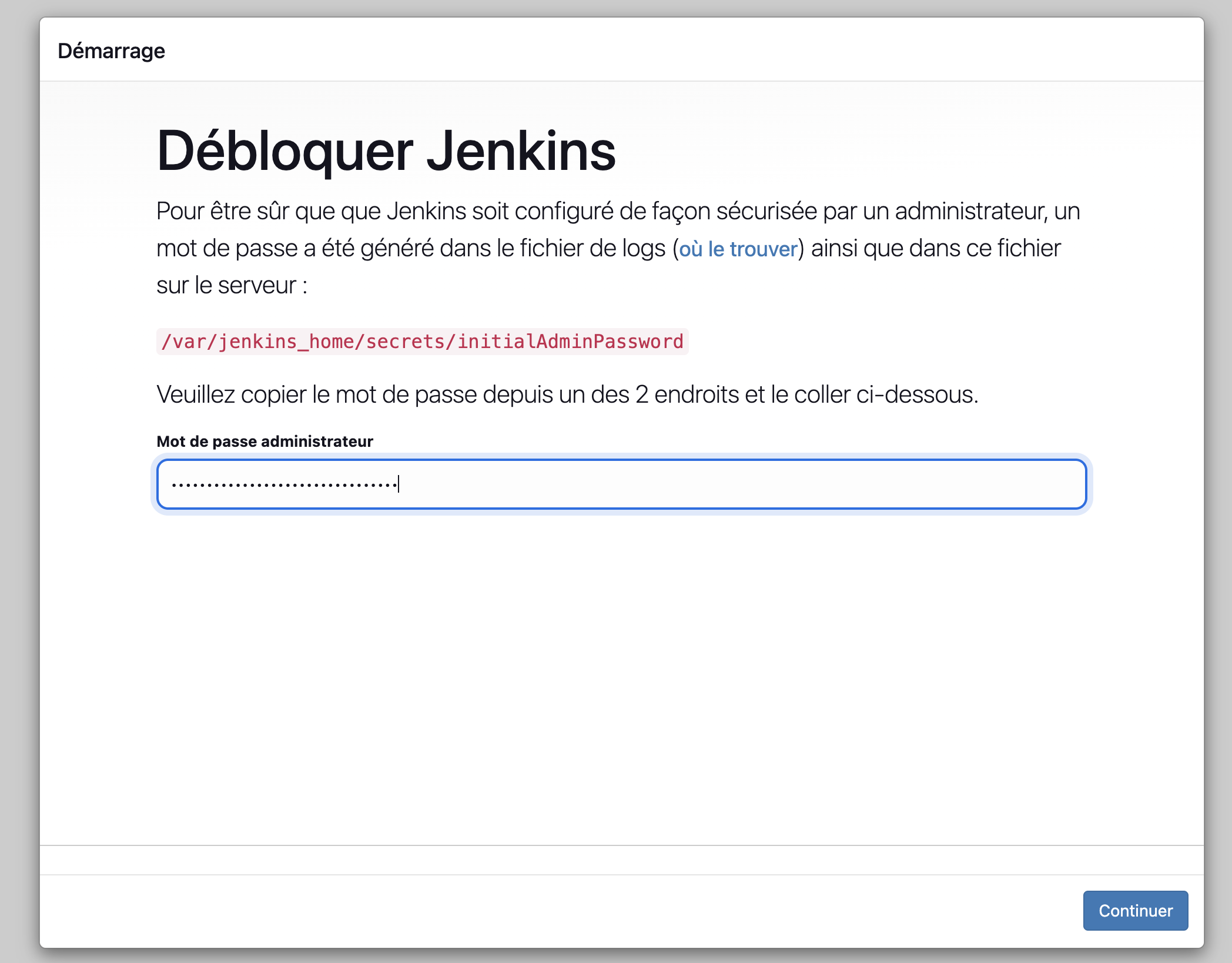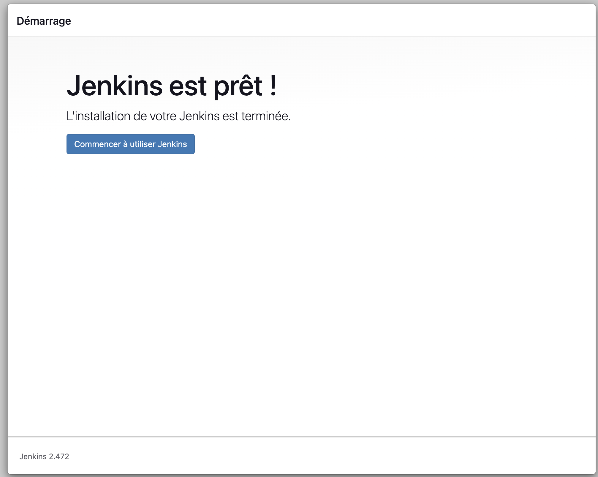 Une fenêtre vous indique que votre instance Jenkins est prête. Cliquer sur Commencer à utiliser Jenkins