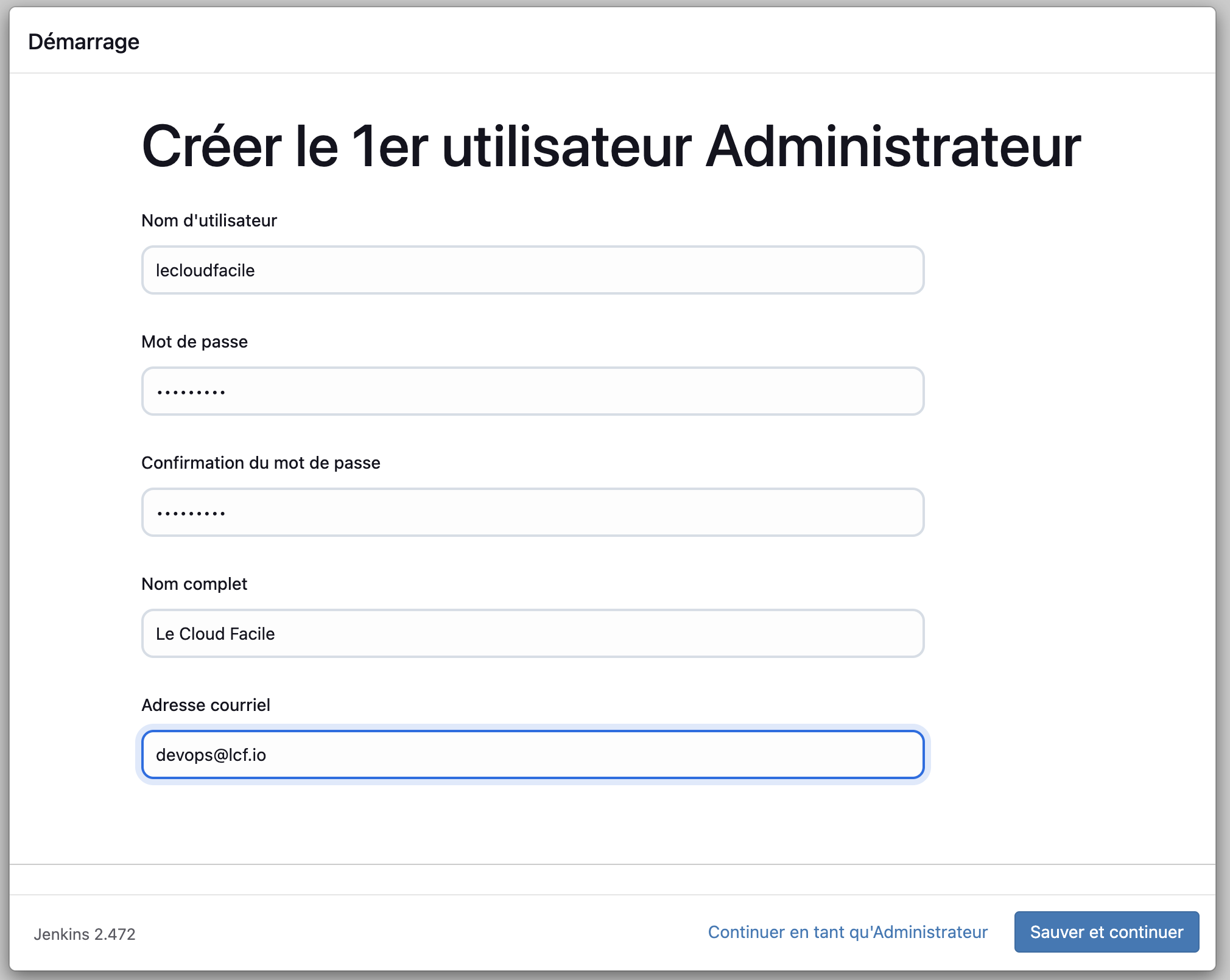 Ouvrir un navigateur et taper l'adresse suivante : http://jenkins.lcf.io
