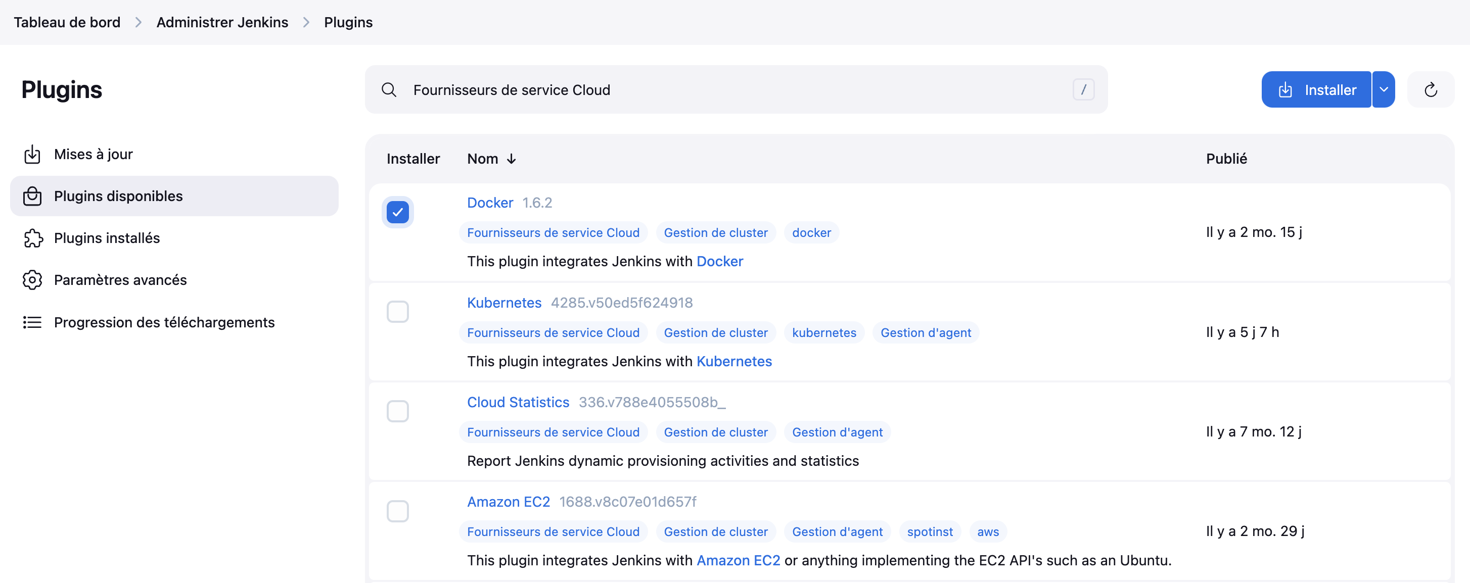 3- Cocher l'option Docker puis cliquer sur le bouton Installer