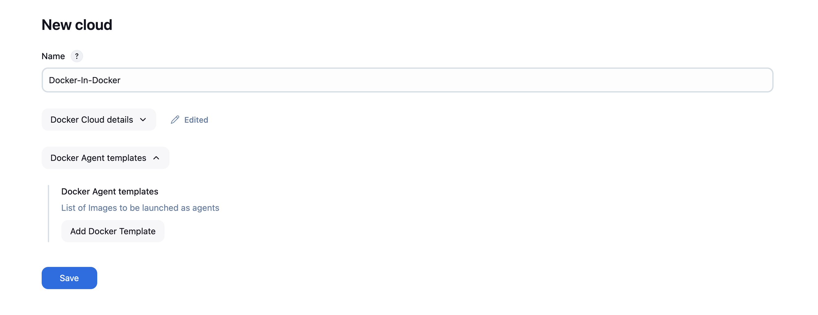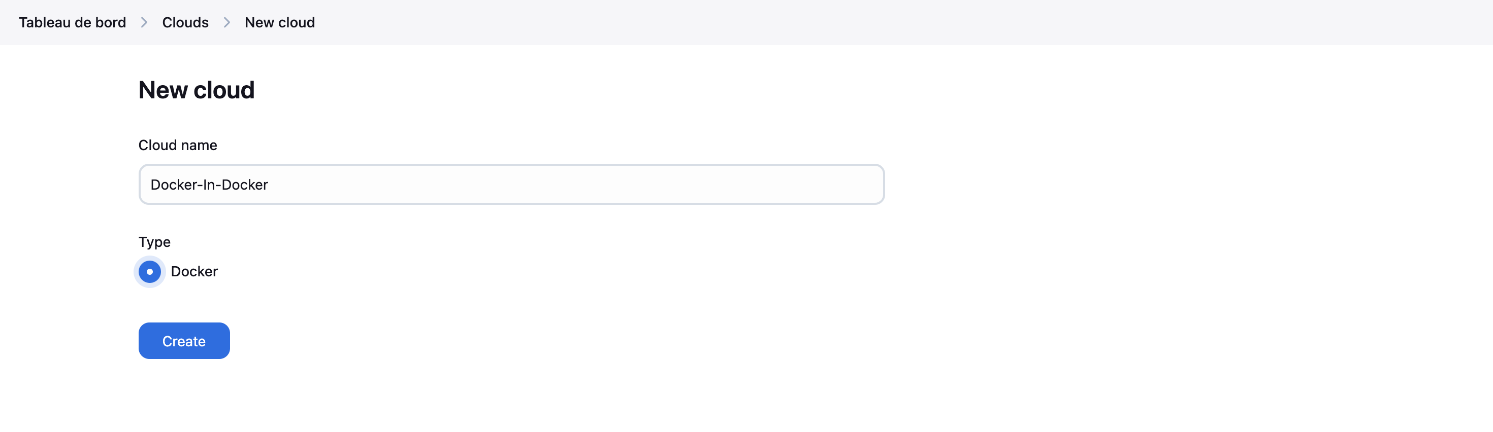 7- Entrer le nom Docker-In-Docker puis cocher Type Docker et cliquer sur Create