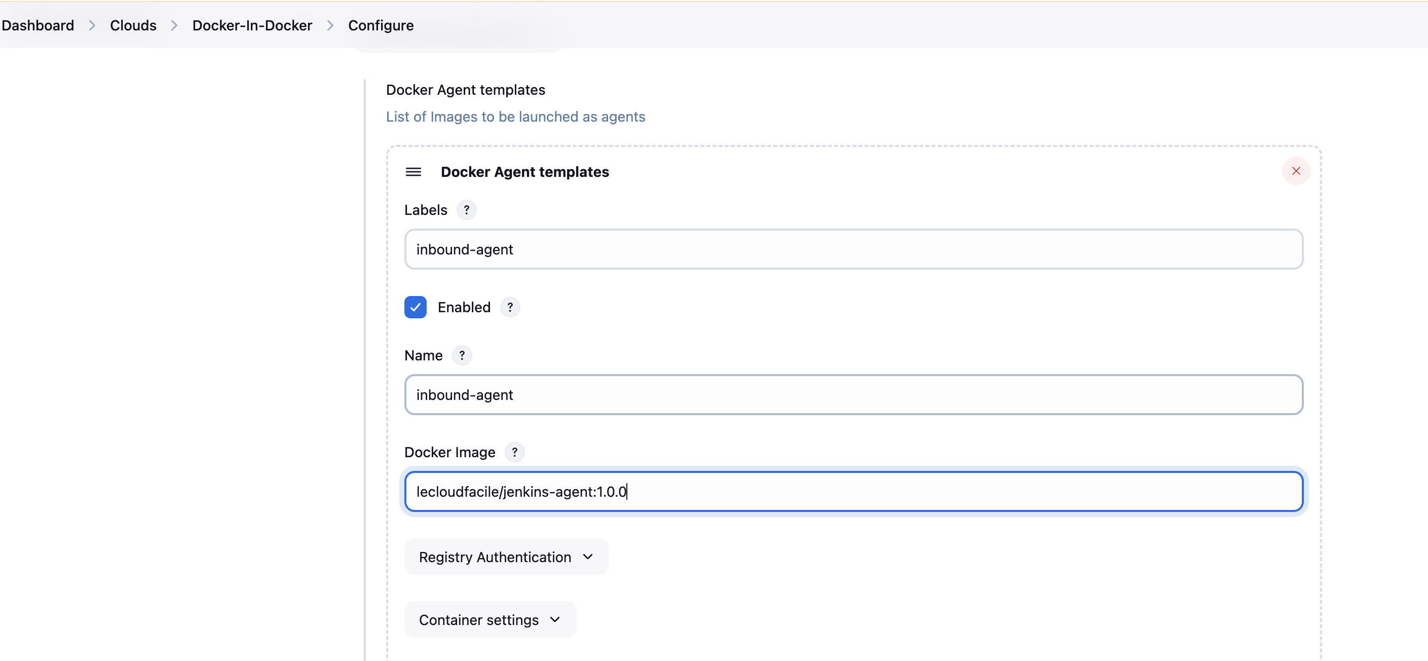 lecloudfacile/jenkins-agent:1.0.0dans le champDocker Image
