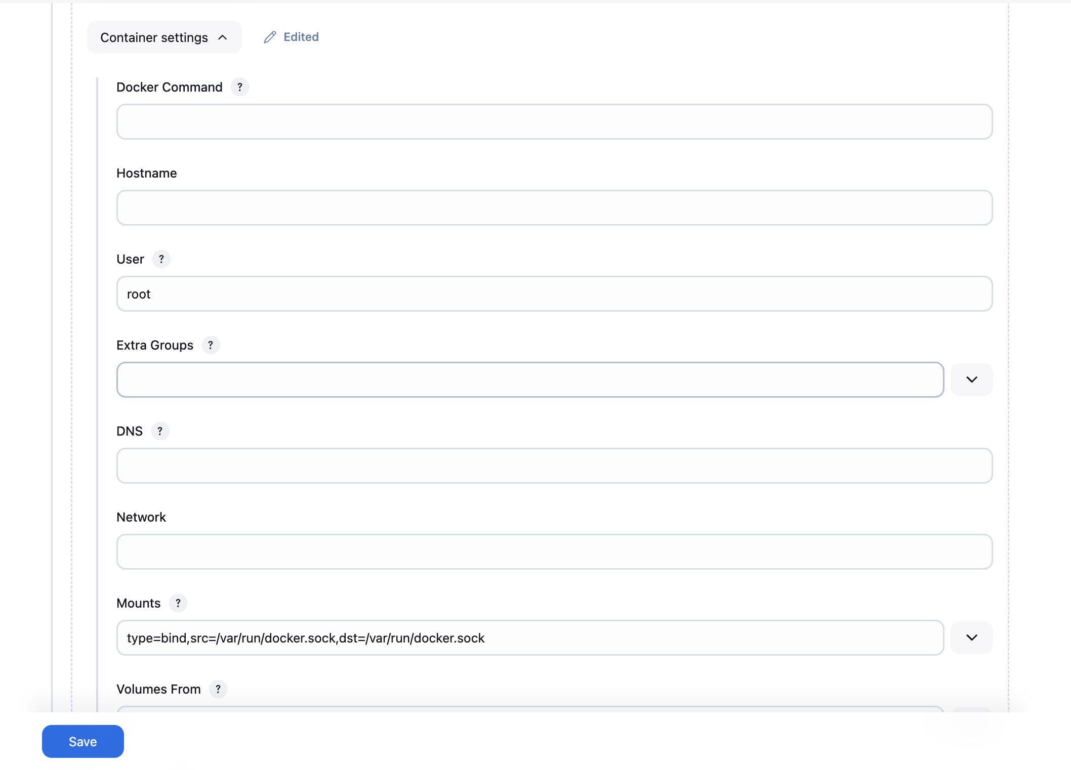 type=bind,src=/var/run/docker.sock,dst=/var/run/docker.sockdans le champMounts