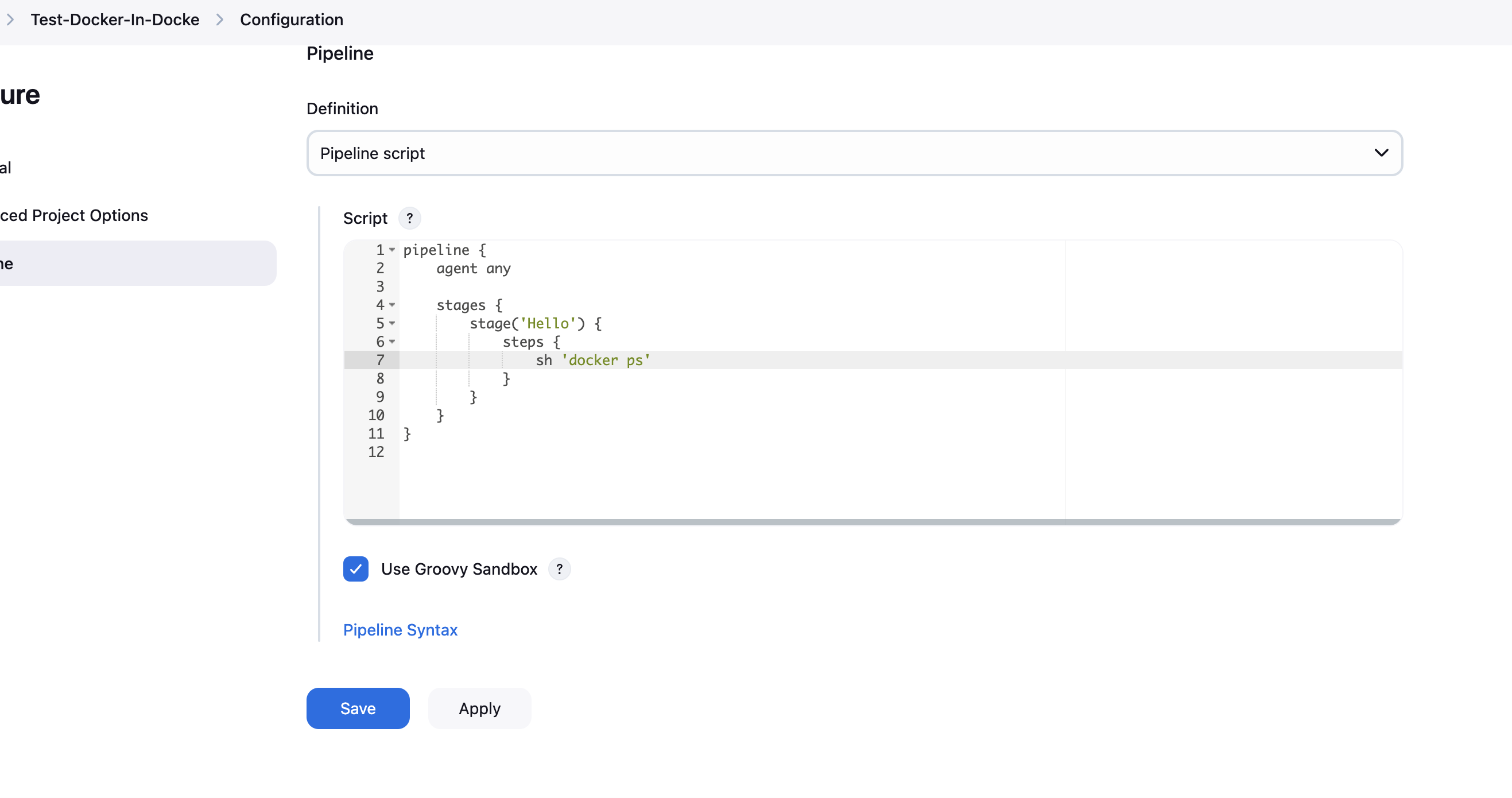 Etape 6: Création d'un pipeline pour tester Docker-In-Docker#