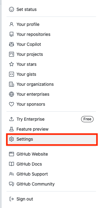 - Se rendre sur son compte Github, cliquer sur le profil, puis sur