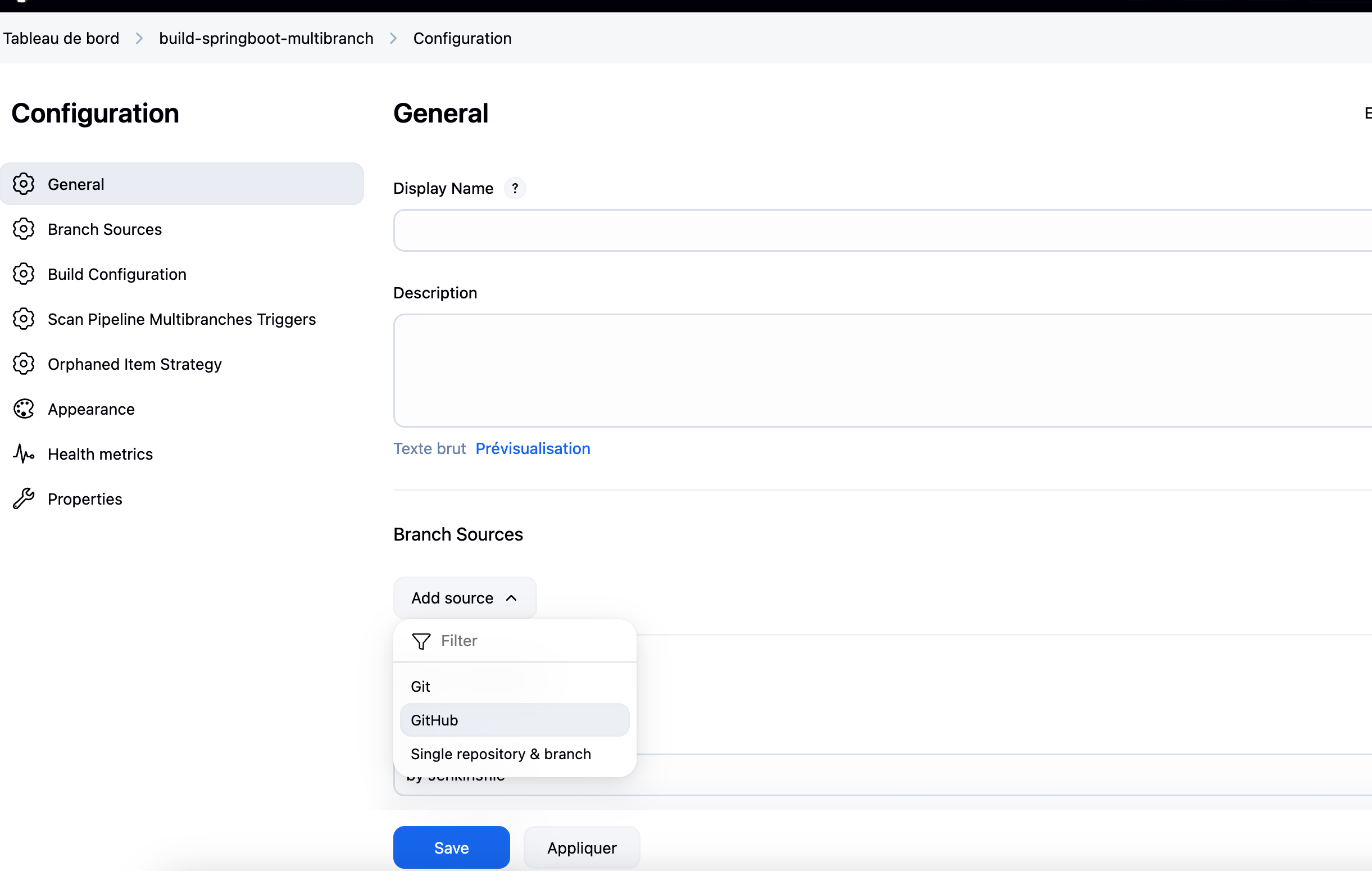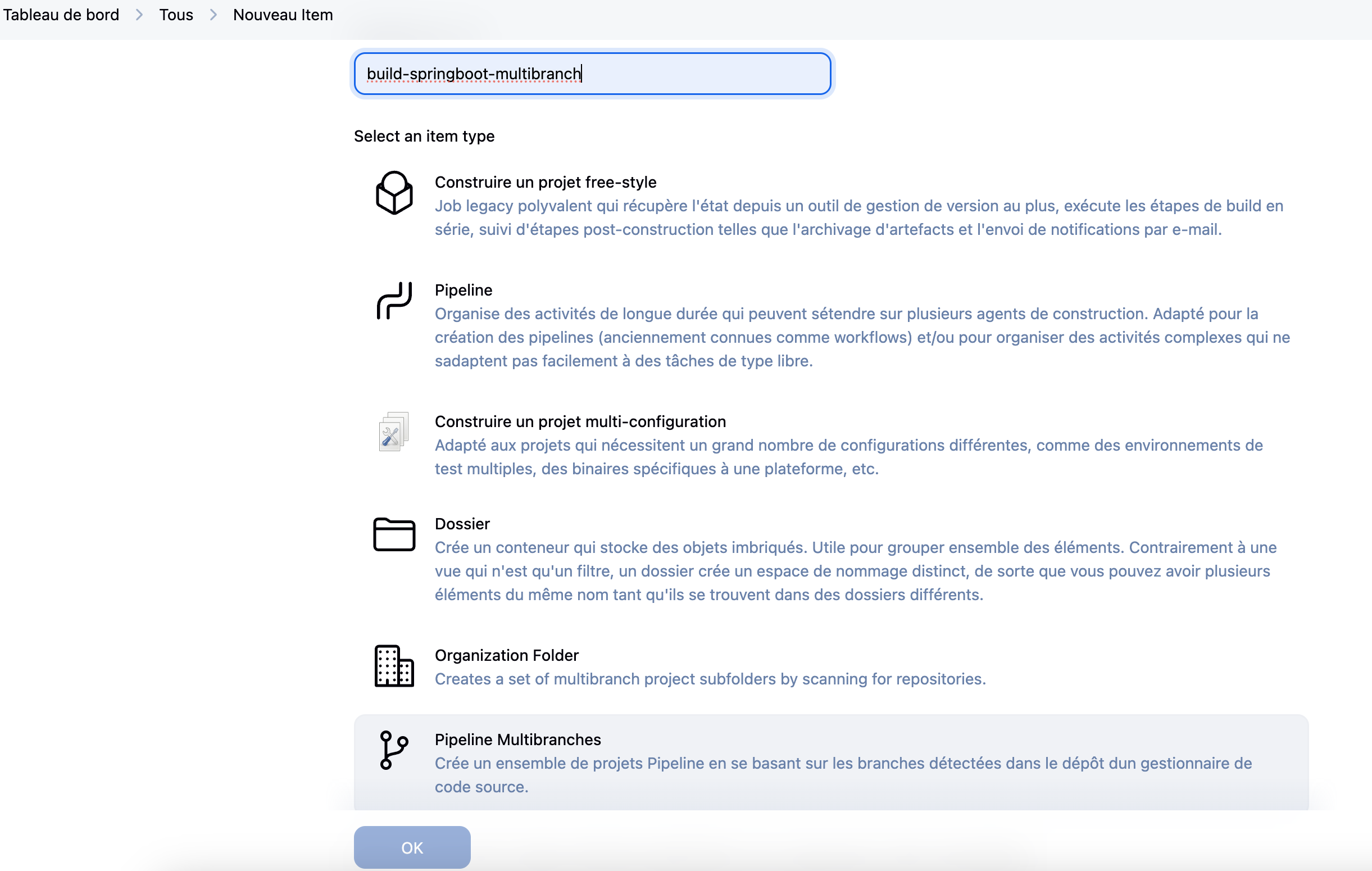 Etape 4 : Création du pipeline multibranch sur Jenkins#