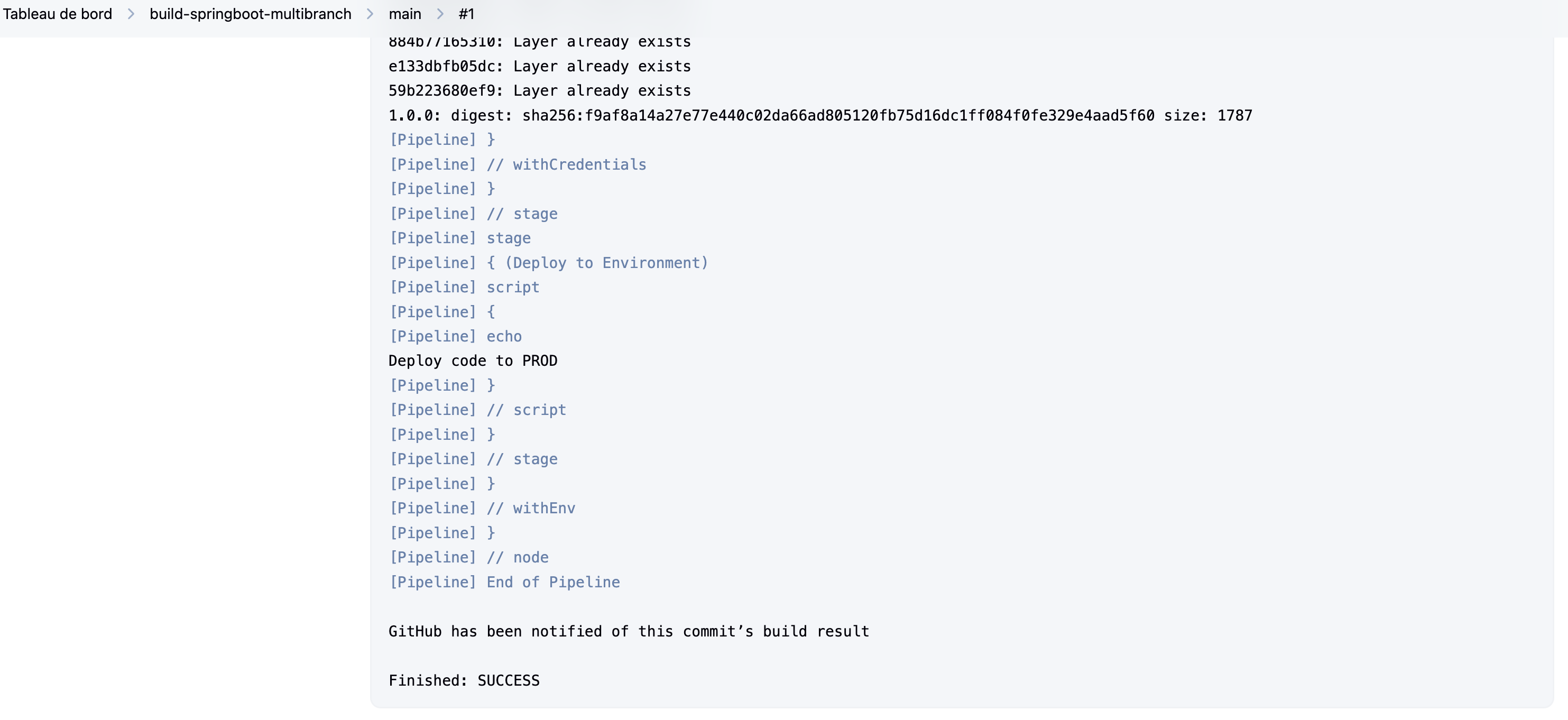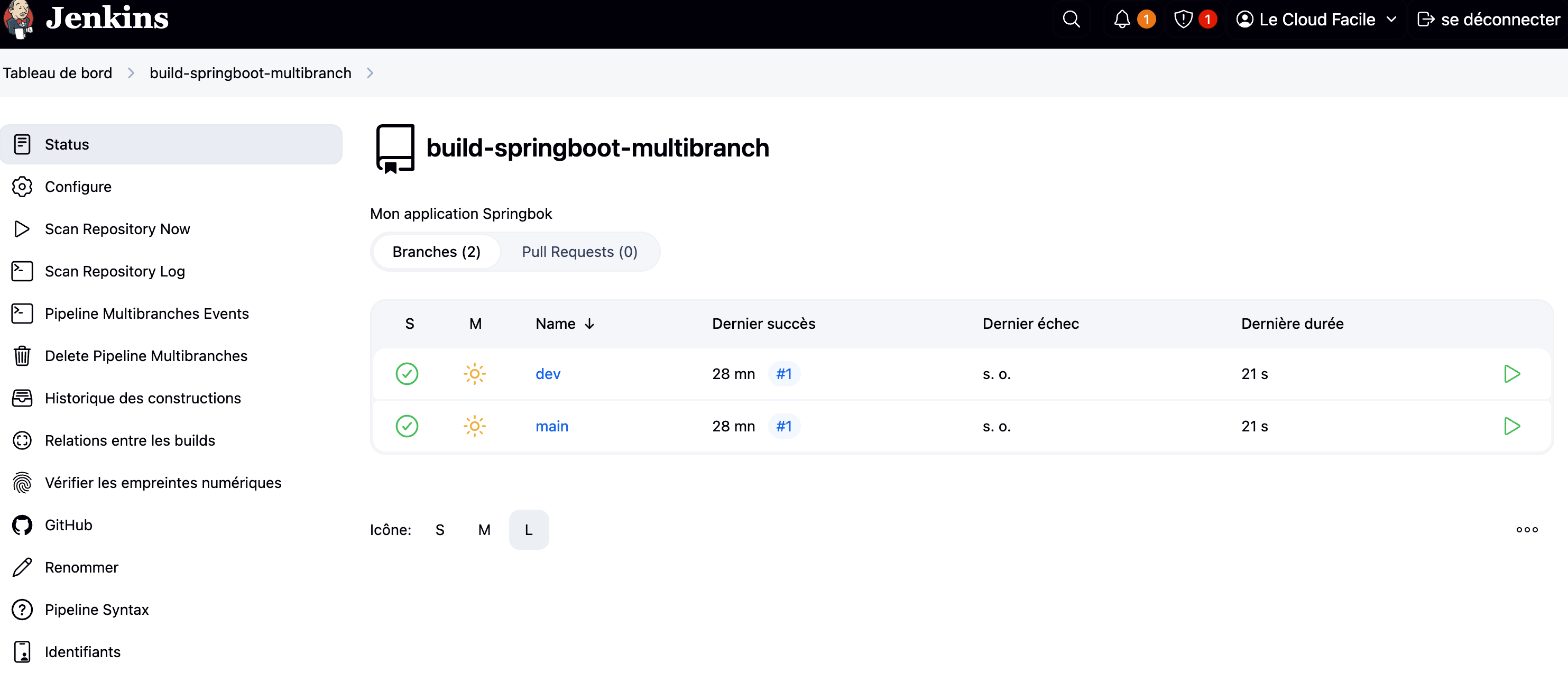 Le pipeline va scanner toutes les branches existantes et éxécuter le Jenkinsfile s'y trouvant