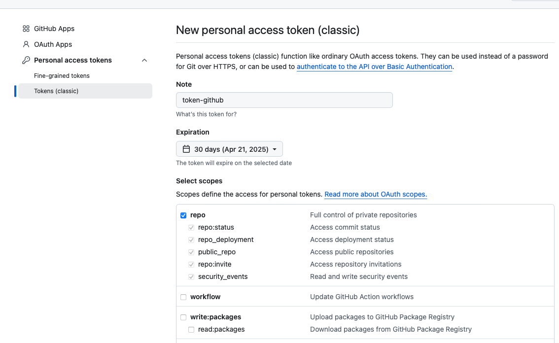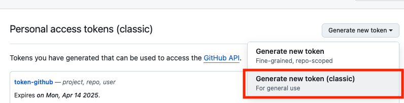Developer settings, puisPersonal access tokenset ensuite surTokens (classic)