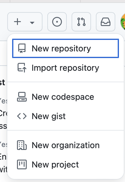 Se rendre sur la page d'accueil de GitHub, cliquer sur le "+", puis sur New repository