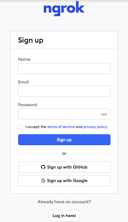 - Une fois installé, créer un compte sur ngrok à l'aide de ce lien --> https://dashboard.ngrok.com/get-started/setup