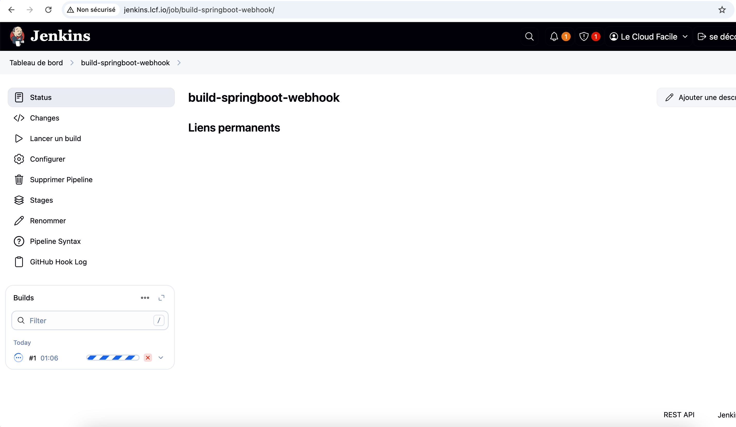 Etape 3 : Mise en place du job Jenkins déclenché via le Webhook sur Github#