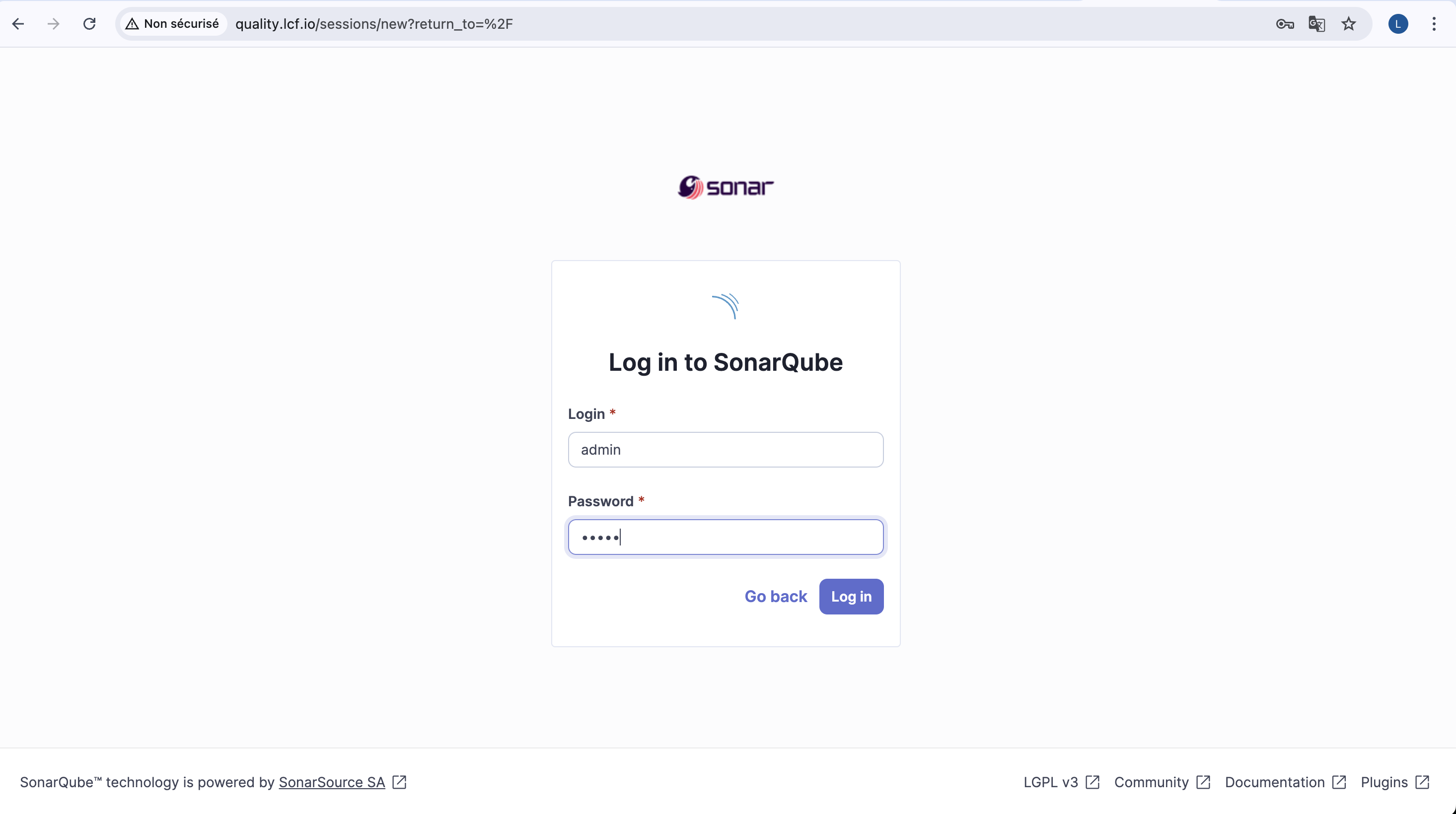 Ouvrir un navigateur et taper l'adresse suivante : http://quality.lcf.io