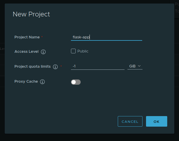 Dans cette étape on va créer un projet (comme fait sur le lab précèdent) afin d'héberger de façon privé nos images docker flask-app