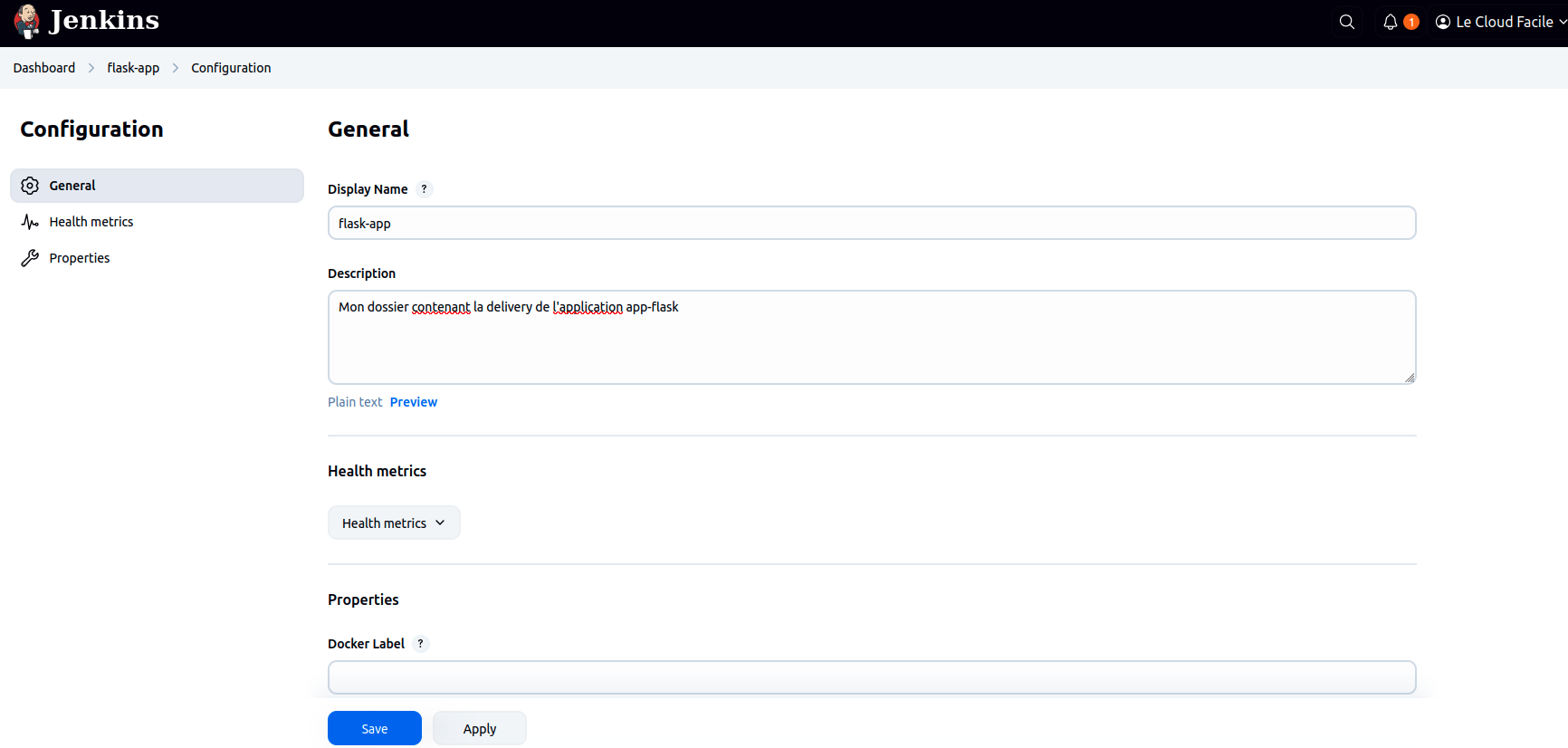Dans cette étape on va créer un nouveau Agent Jenkins Cloud de type Docker en partant d'une nouvelle image Docker qui va intégrer tous les pré-requis nécessaires (tels que python, trivy, ...) pour pouvoir builder, tester et faire tourner notre application flask-app