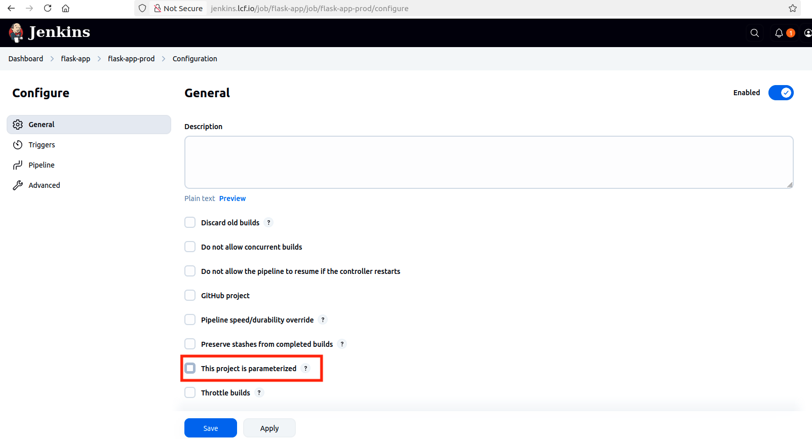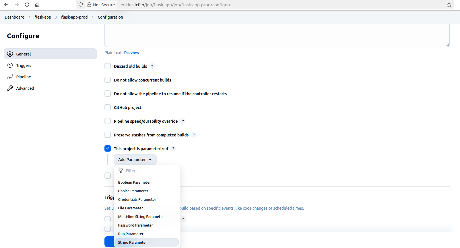Créer un nouveau job de type pipeline avec le nom flask-app-prod
