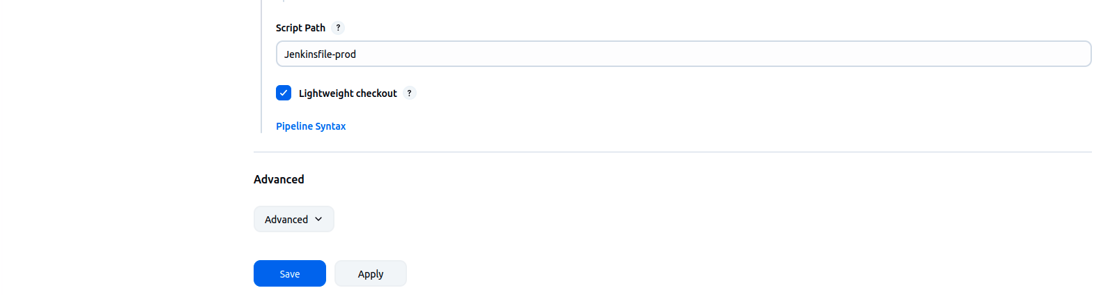 Ensuite comme avec le pipeline jenkins de dev, renseigner l'url de GIT, ensuite renseigner main dans la partie Branches to Build et enfin dans Script Path, renseigner : Jenkinsfile-prod