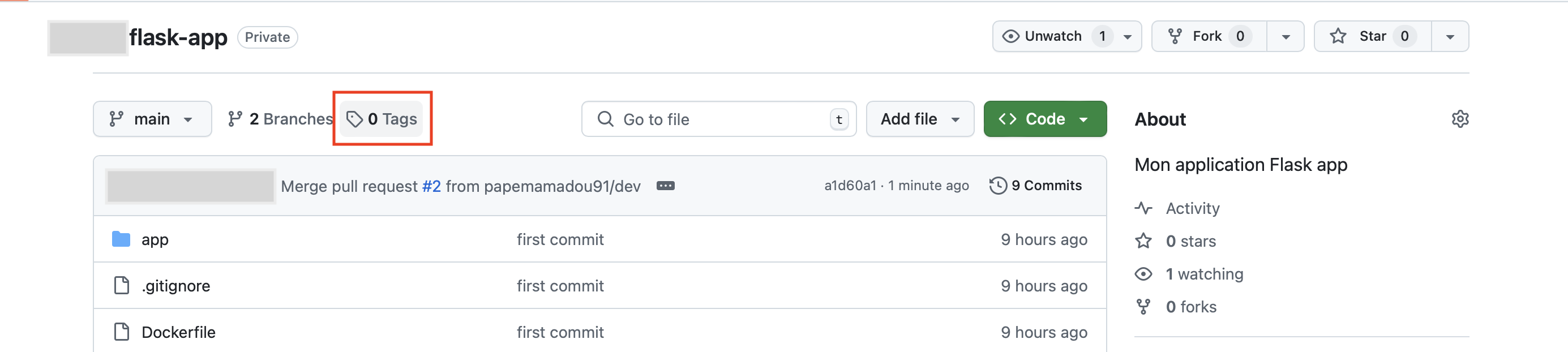 Etape 1 : Création d'un repo Github privé pour hébergement de l'application flask-app#