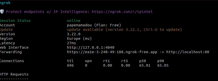 - Lancer le tunnel ngrok