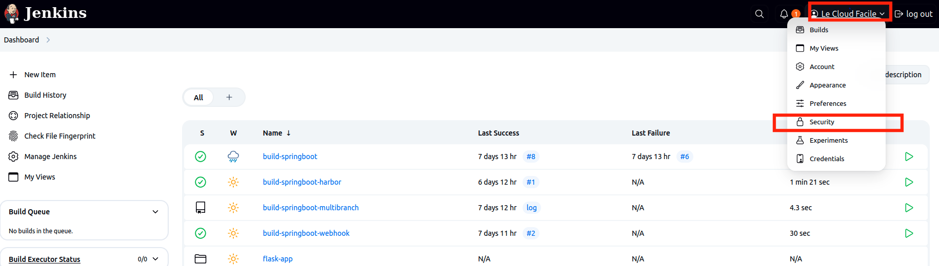 Puis depuis la page principale de Jenkins, se rendre dans le dossier