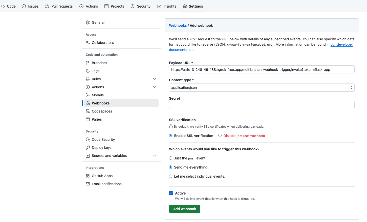 flask-app-cd-->Settings-->Webhooks-->Add webhook