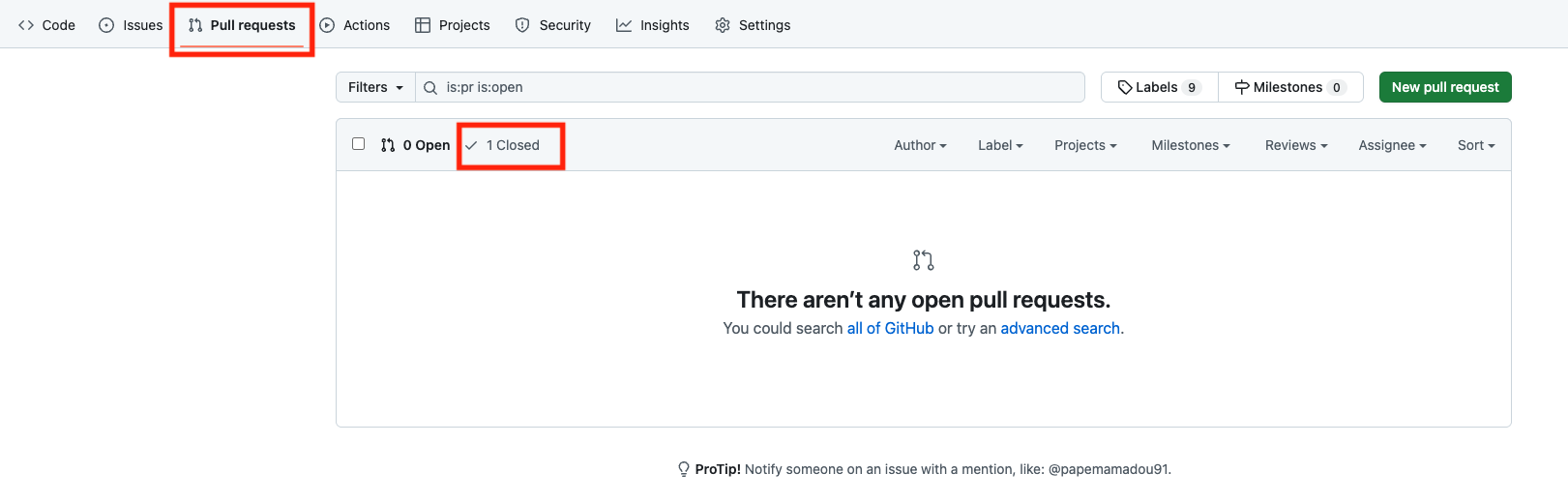 Se rendre dans l'onglet Pull requests, cliquez sur Closed