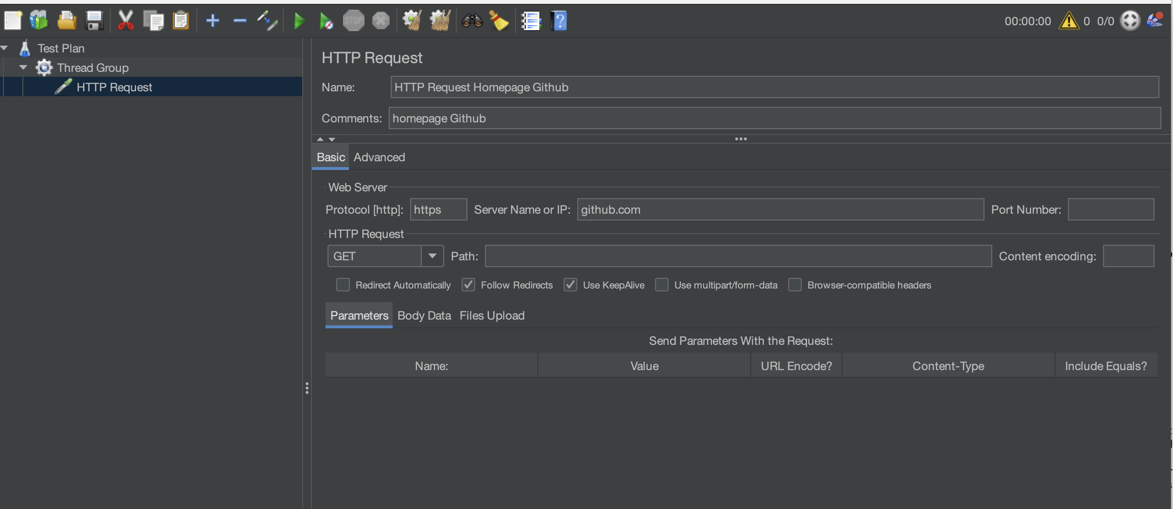Server Name or Ip : url cible de l'application à tester. dans notre cas github.com