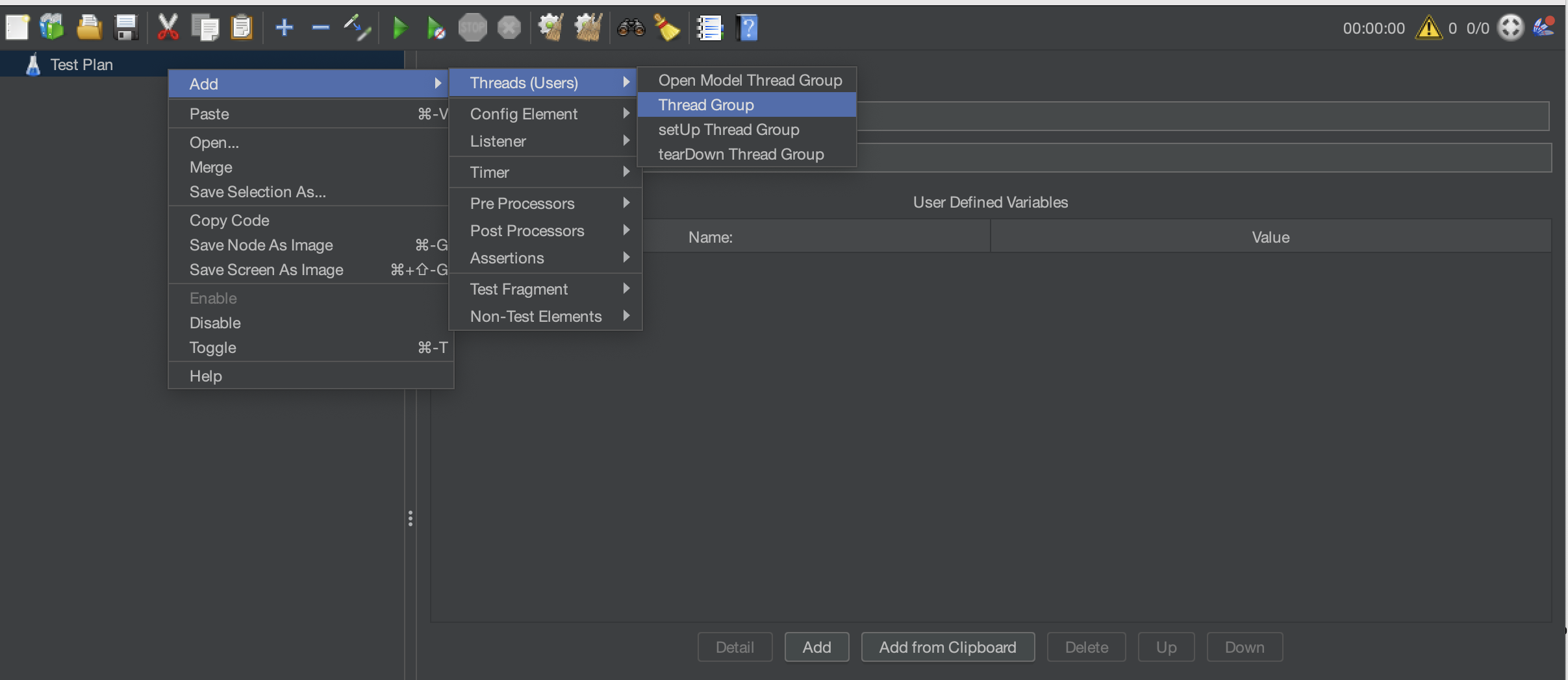 - Ajout d'un groupe de Threads (groupe d'utilisateurs) au plan de test pour configurer le nombre d'utilisateurs nécessaires pour le test de charge