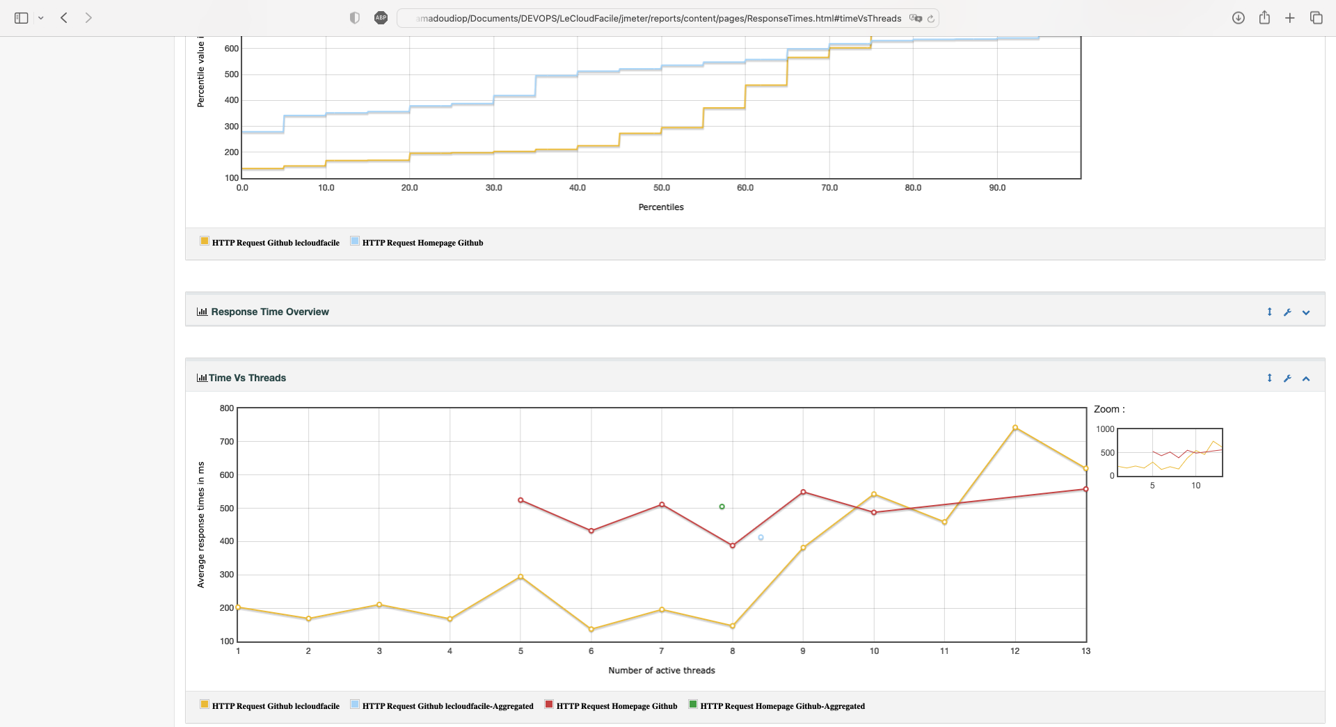 On peut y retrouver un résumé codensé des résultats de nos tests sous forme de tableau (le load time, % d'erreurs, nombre de paquets envoyés par secondes,...)