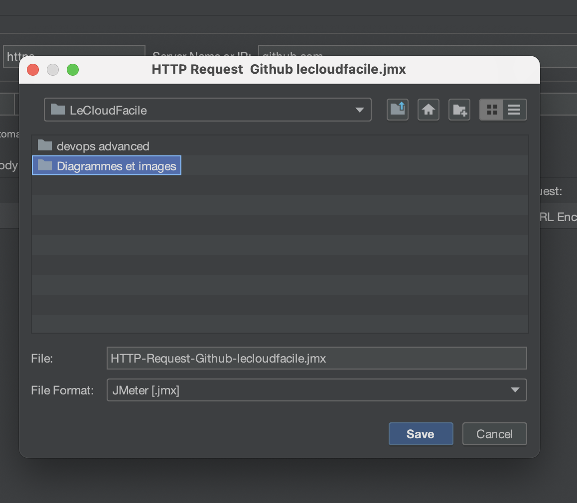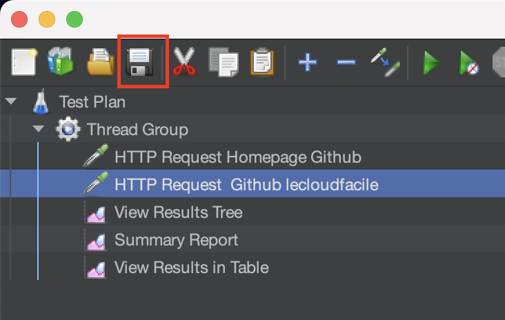 Ensuite sauvegarder pour mettre à jour notre fichier HTTP-Request-Github-lecloudfacile.jmx